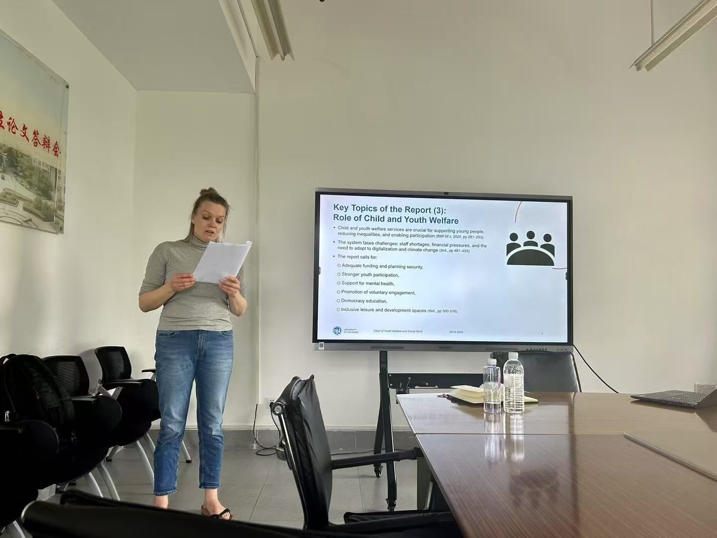 此外,5月29日周四下午,德国科隆大学Nadia Kutscher教授、研究助理Klara-Marie Niermann、邱岚主任与社会工作系主任程明明等教师与学生代表开展了内部座谈,就德国科隆大学人文科学学院与我院此前签订的Erasmus+项目合作协议及后续合作安排,双方就本科生与硕士生培养方案、课程设计、国际生交换、研究生联合培养、暑期学校等合作方式展开了深度交流与探讨。